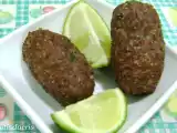 Kibe frito c/ coalhada seca AperitivoMuito Fácil1 hora Enviar esta receita a um amigo Imprima esta página Falar com o autor da receita Fez esta receita? Compartilhe Ingredientes 8 600 g de patinho moído 2 vezes 500 g de trigo para kibe 700 ml de água fervente 1 tablete de caldo de carne sal,hortelã,alho,pimenta síria,zaatar 3 a 4 colheres de farinha de trigo Recheio de carne moída: 300 g de carne moída nozes picadas alho,cebola,hotelã,pimenta síria