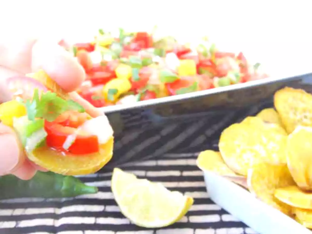 Pico de gallo & chips de batata doce