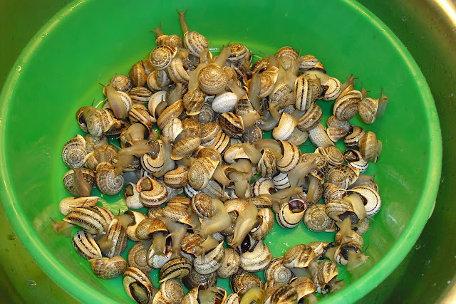 Primeiro a tarefa chata, aborrecida, e paciente, aliás, muito paciente que é lavar os caracois!!!