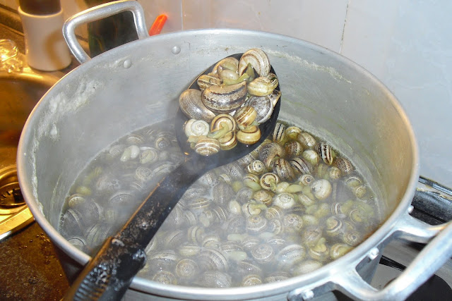 Este é um dos poucos petiscos que o meu marido faz, com gosto e prazer..caracois!