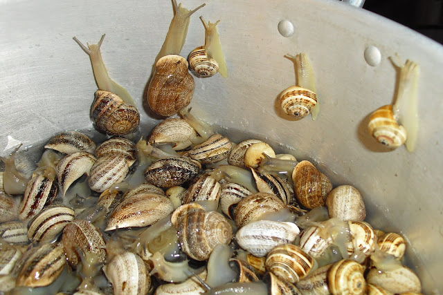 As caracoletas numa tentativa de se salvarem, enquanto eram lavaditas...(não conseguiram a salvação!!!)