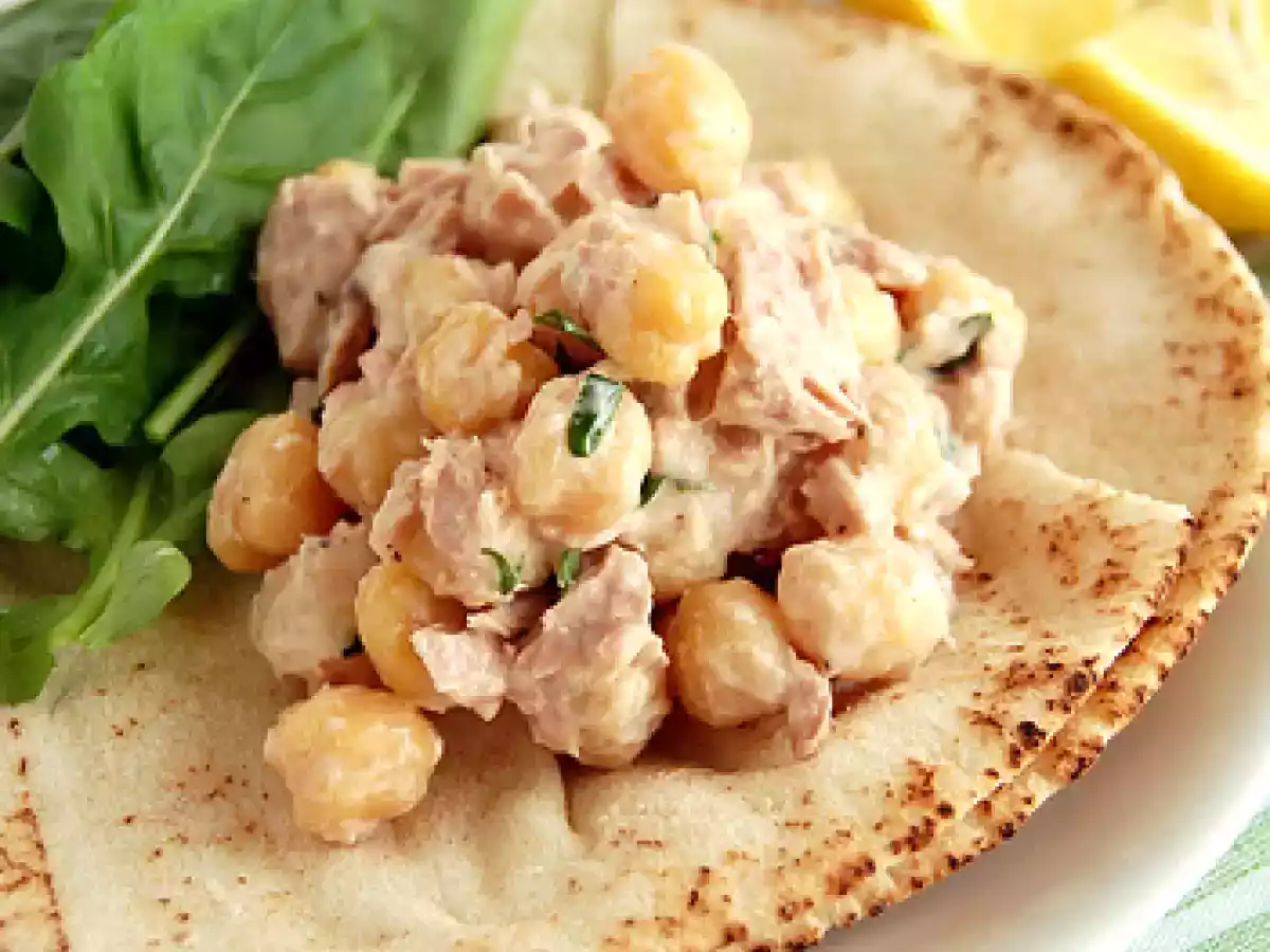 Salada cremosa de atum e grão-de-bico AnteriorNext EntradaMuito Fácil15 min Enviar esta receita a um amigo Imprima esta página Falar com o autor da receita Fez esta receita? Compartilhe Ingredientes 2 xícara medidora de 240 ml ¼ xícara de maionese 2 colheres (sopa) de suco de limão siciliano sal e pimenta do reino moída na hora 1 lata de 400 g de grão-de-bico* - escorra e enxágüe antes de usar 2 latas de 185 g de atum conservado em óleo, escorrido 1 cebolinha, em fatias finas 2 colheres (sopa) de folhas de salsinha, picadas se forem muito grandes 80 g de folhas de rúcula azeite de oliva pão folha ou pita, para servir