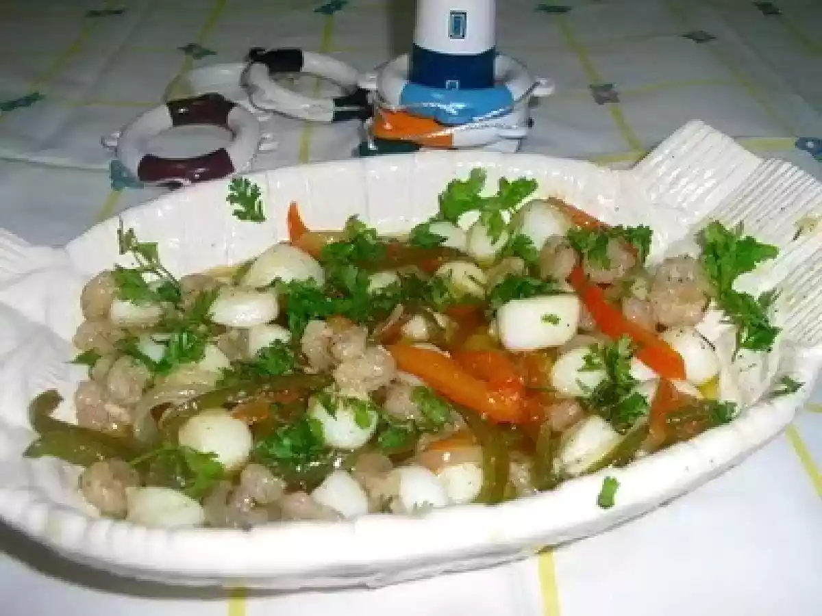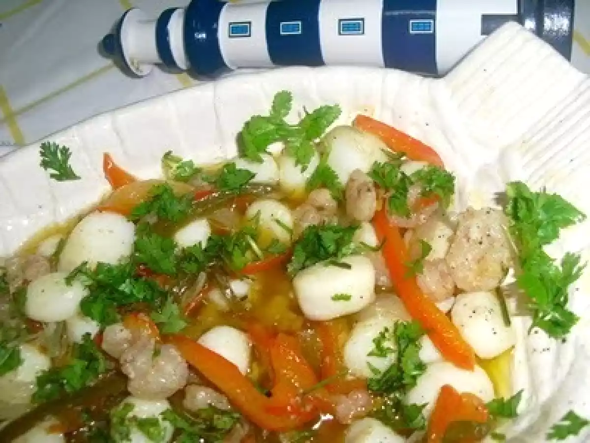Salteado do mar AnteriorNext EntradaMuito Fácil25 min101 Kcal Enviar esta receita a um amigo Imprima esta página Falar com o autor da receita Fez esta receita? Compartilhe Ingredientes 3 1 embalagem de Pérolas do Mar / noix de St- Jaques (300 gr) 1 embalagem de miolo de camarão (200 gr) 1/4 de pimento verde 1/4 de pimento encarnado 1,5dl de azeite sal e pimenta q.b. vinho branco q.b. 3 cebolinhas coentros picados Custo estimado: 2.4Euros€ (0.8€/porção)