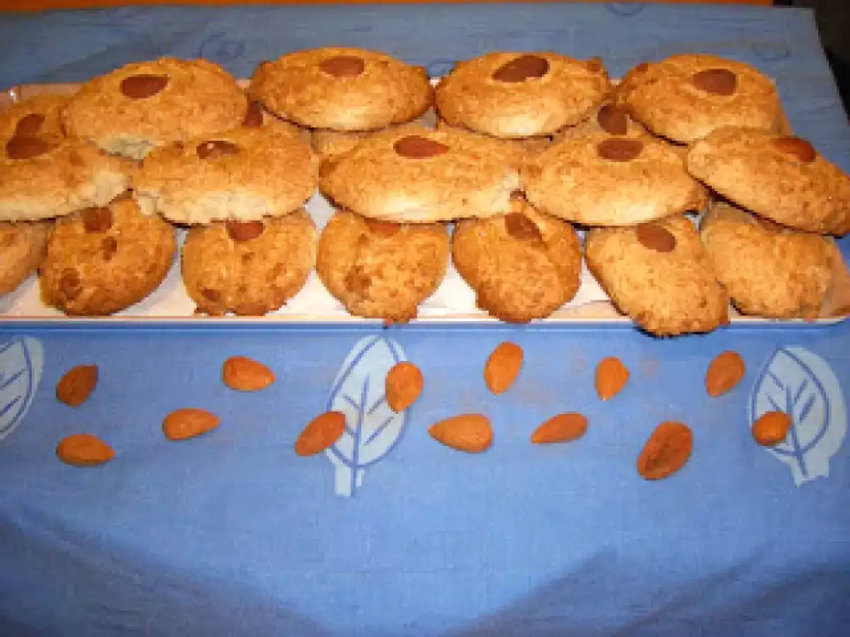 Biscoitos de amendoa e coco á rico. AnteriorNext OutroMuito Fácil50 min306 Kcal Enviar esta receita a um amigo Imprima esta página Falar com o autor da receita Fez esta receita? Compartilhe Um simples e fácil de fazer receita e um especial. Ingredientes 8 3 claras de ovo 100 g amêndoa ralada 50 g coco ralado 100 g farinha de arroz fina 250 g açúcar normal 4 colheres de sopa de farinha com fermento 1 colher de chá de fermento em pó Custo estimado: 3.79Euros€ (0.47€/porção)