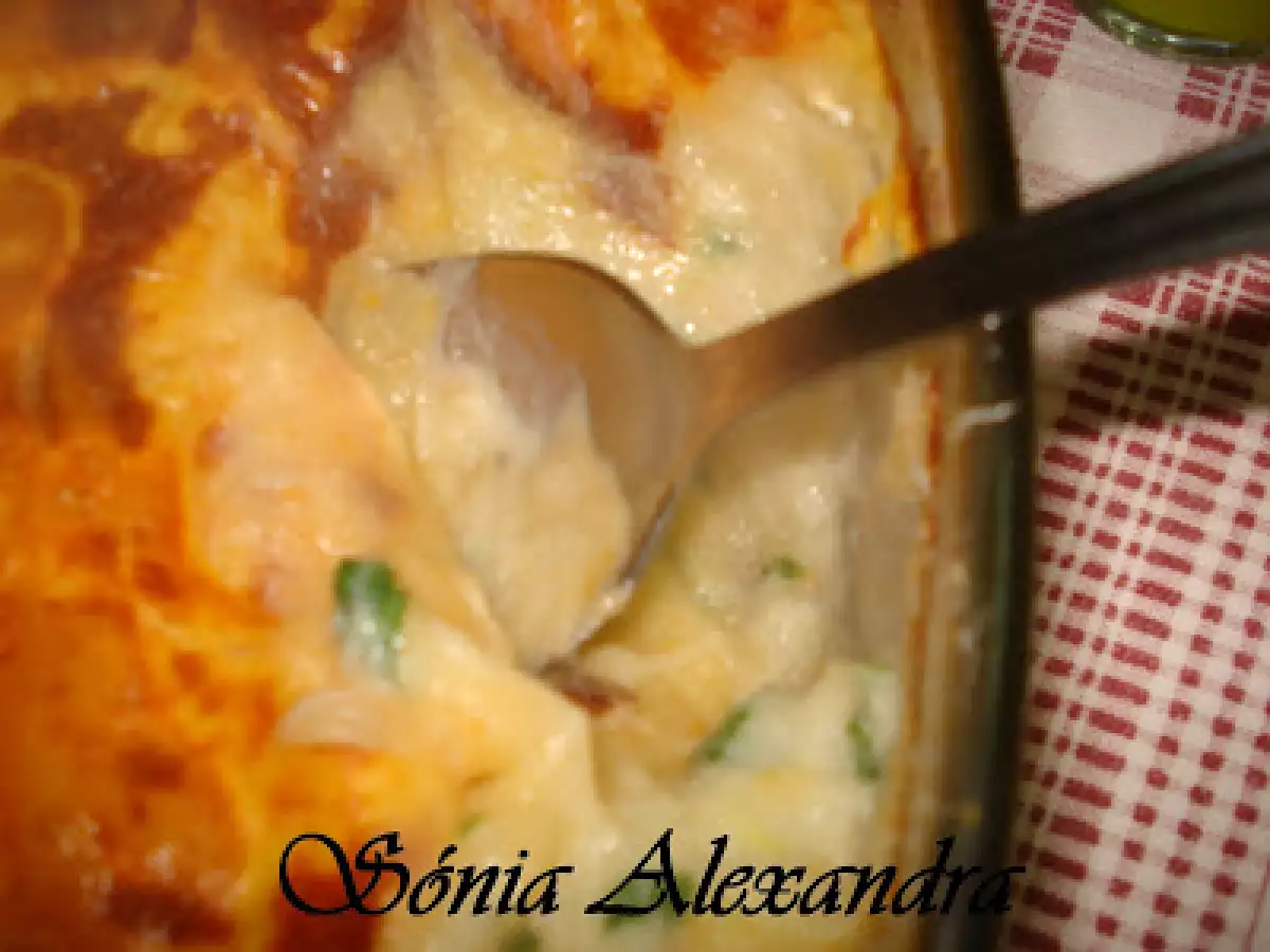 Empadão de peixe gratinado no forno... AnteriorNext OutroMuito Fácil40 min421 Kcal Enviar esta receita a um amigo Imprima esta página Falar com o autor da receita Fez esta receita? Compartilhe Ingredientes 4 1 kg de filetes de pescada salsa caldo de peixe farinha batatas 1 cenoura leite margarina noz moscad pimenta ovo batido