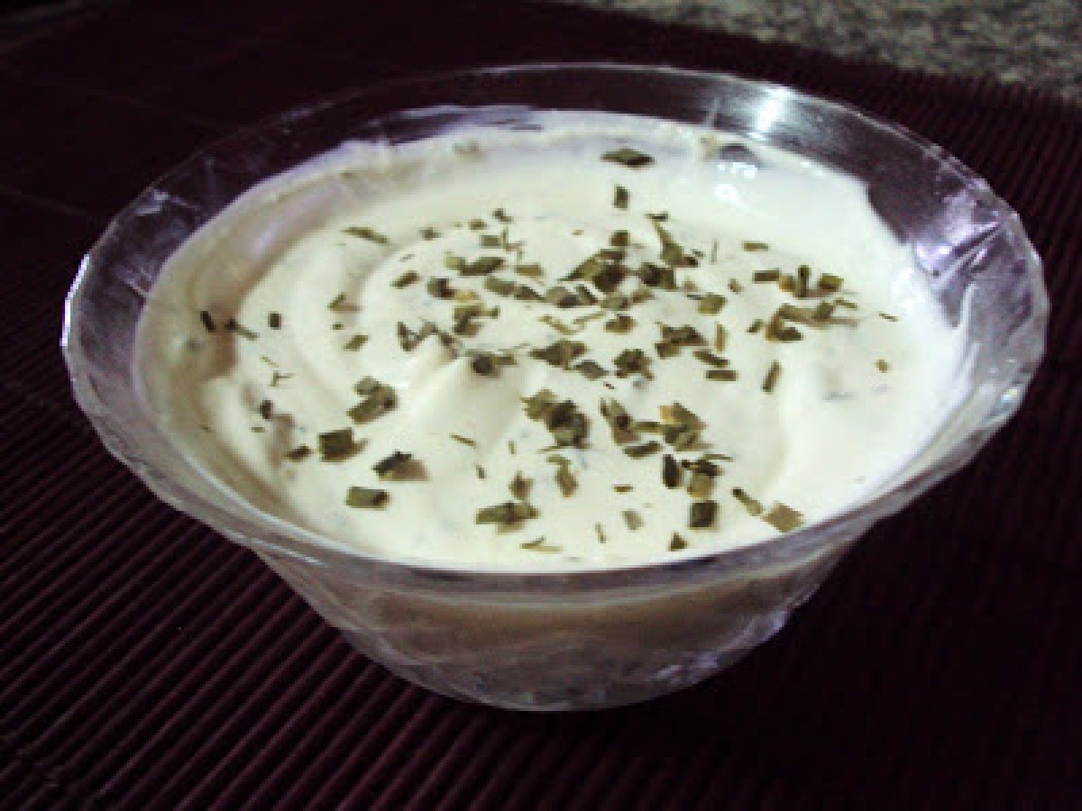 Molho de alho e ervas OutroMuito Fácil45 min282 Kcal Enviar esta receita a um amigo Imprima esta página Falar com o autor da receita Fez esta receita? Compartilhe Ingredientes 4 6 colheres de sopa de maionese 8 colheres de sopa de natas 1/2 colher de sopa de cebolinho seco 1/2 colher de sopa de salsa em pó 4 colheres de chá de sumo de limão 2/3 colheres de chá de alho em pó água Custo estimado: 1.46Euros€ (0.36€/porção)