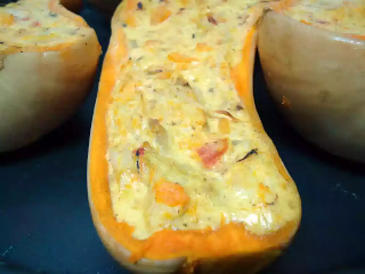 Abóbora recheada com bacalhau AnteriorNext Prato PrincipalMuito Fácil35 min364 Kcal Enviar esta receita a um amigo Imprima esta página Falar com o autor da receita Fez esta receita? Compartilhe Ingredientes 4 2 abóbora manteiga (600g) 2 dente de alho 1 cebola 100 g de alho francês 100 g de rebentos de soja 200 g de tomate maduro ou pelado 60 g de pimento verde CoentrosAzeite: 100 g de queijo tipo Philadelphia 200 ml de leite de coco 400 g de bacalhau desfiado e demolhado Polpa das abóboras 1 colher (café) de caril em póSal Custo estimado: 12.81Euros€ (3.2€/porção)