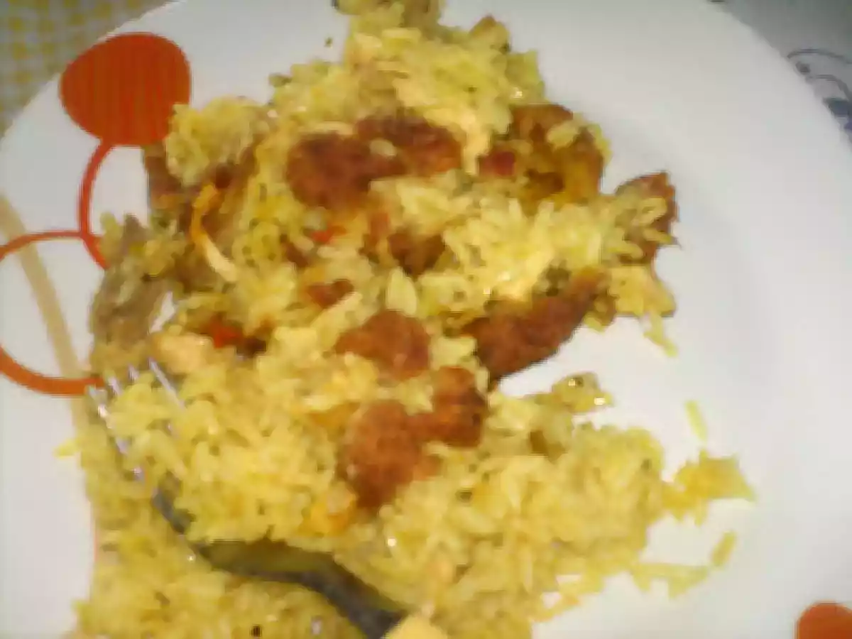 Arroz de forno com frango e alheira AnteriorNext Prato PrincipalMuito Fácil55 min Enviar esta receita a um amigo Imprima esta página Falar com o autor da receita Fez esta receita? Compartilhe Ingredientes 4 1 frango 1 alheira 2 cebolas sal pimenta 100 g de bacon 2 folhas de louro 4 dentes de alho oregaos 1 dl de azeite 1/2 pimento vermelho 1 colher (de chá) de açafrão 350 g de arroz