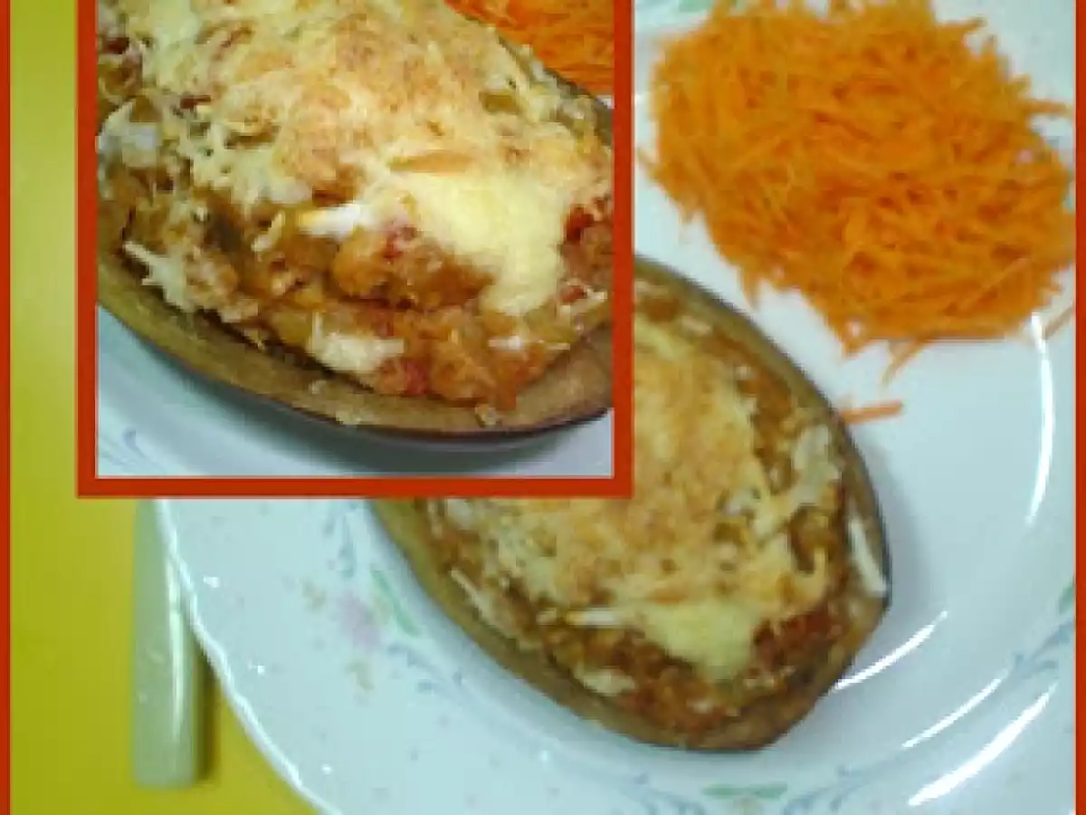 Beringela recheada com atum AnteriorNext Prato PrincipalMuito Fácil1 h 5 m343 Kcal Enviar esta receita a um amigo Imprima esta página Falar com o autor da receita Fez esta receita? Compartilhe Ingredientes 2 1 beringela 1 lata de atum ao natural 4 tiras de pimento vermelho 1 cebola pequena 1 tomate maduro 1 colher de sopa de azeite sal, pimenta alho em pó 2 colheres de sopa de polpa de tomate 2 colheres de sopa de vinho branco queijo para polvilhar Custo estimado: 4.8Euros€ (2.4€/porção)
