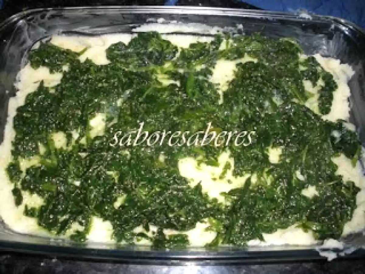 Empadão de carne com puré e espinafres AnteriorNext Prato PrincipalMuito Fácil50 min Enviar esta receita a um amigo Imprima esta página Falar com o autor da receita Fez esta receita? Compartilhe Ingredientes 6 Carne picada Folhas de Espinafres 40 g de azeite 1 dente de Alho 1 embalagem de Puré de Batata da Maggi 1 ovo batido