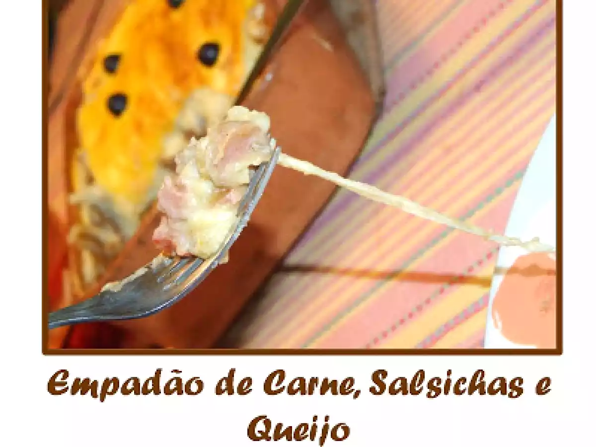 Empadão de carne, salsicha e queijo AnteriorNext Prato PrincipalMuito Fácil1 h 10 m Enviar esta receita a um amigo Imprima esta página Falar com o autor da receita Fez esta receita? Compartilhe Ingredientes 6 440 g carne de vaca 1 lata de 8 salsichas 2 fatias grossas de queijo tipo flamengo 1 tira pequena de pimento vermelho 1 colher de chá de colorau 1 colher de café de tomilho 1 cebola 2 colheres de sopa de polpa de tomate 1 knorr de culinária Vinho branco q.b. 1.5 kg de batatas 1 colher de sopa de maionese Sal, pimenta e noz moscada q.b. Leite e Azeite q.b. 1 gema