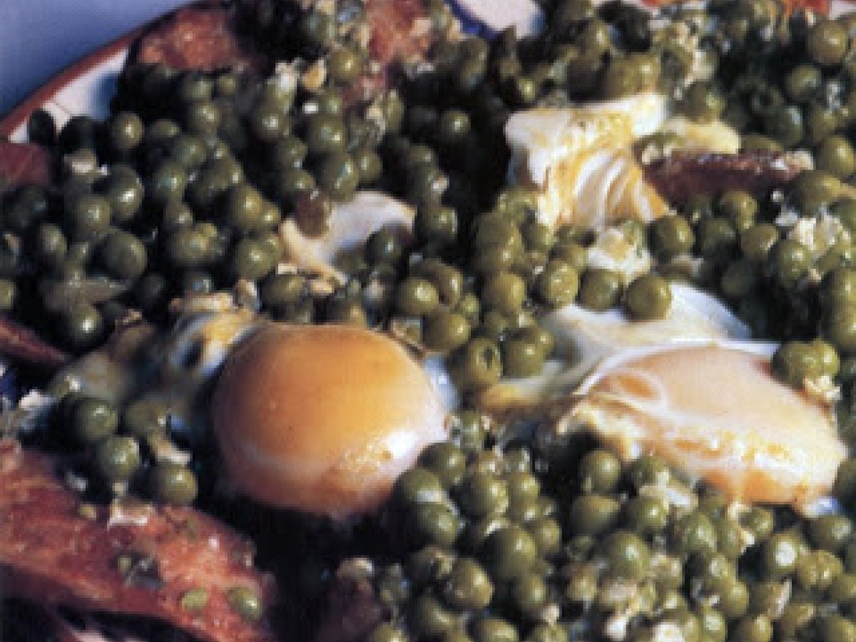 Ervilhas com ovos e paio à alentejana