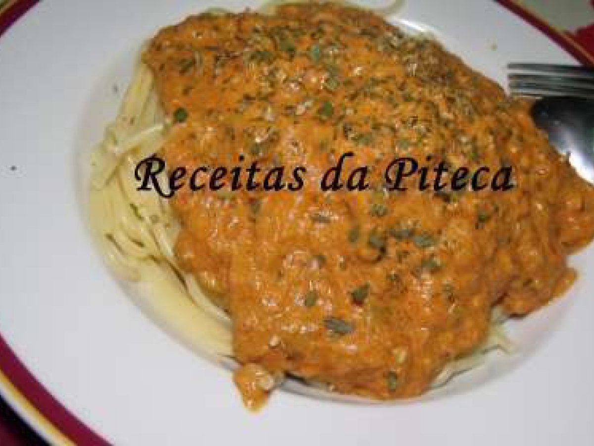 Olá! Olá! Cá estou eu novamente! A pouco e pouco quero ver se consigo vir aqui postar receitinhas com mais frequência, não tem sido muito fácil, pois com o trabalho e alguns problemazitos de saúde ainda por resolver, a vontade não tem sido muita, tenho andado um pouco afastada da cozinha, neste momento está mais entregue ás mãos do meu homem, mas confesso que sinto falta de improvisar e de vir aqui partilhar convosco, não só os meus improvisos mas também as vossas próprias receitas que também gosto muito de ir experimentando de vez em quando... enfim, vai-se fazendo o que se pode! Desta vez trago-vos uma receitinha de um molho para massas que inventei hoje para o meu jantar e que, modéstia à parte, ficou uma delícia...eh eh! Então fiz assim: