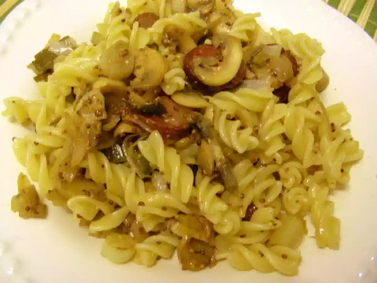 Espirais com cogumelos, alho francês e chouriço AnteriorNext Prato PrincipalMuito Fácil20 min437 Kcal Enviar esta receita a um amigo Imprima esta página Falar com o autor da receita Fez esta receita? Compartilhe Ingredientes 2 1/2 cebola aos cubos 150 g de cogumelos frescos laminados 1 alho francês às rodelas 1/4 chouriço às rodelas azeite q.b. 1 colher de sopa de mostarda antiga 1 colher de chá de vinagre balsâmico sal e pimenta q.b. espirais cozidas q.b. para duas pessoas Custo estimado: 2.51Euros€ (1.25€/porção)