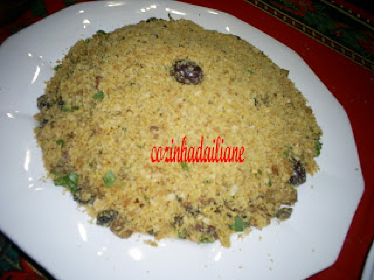 Farofa agridoce Prato PrincipalMuito Fácil40 min268 Kcal Enviar esta receita a um amigo Imprima esta página Falar com o autor da receita Fez esta receita? Compartilhe Ingredientes 4 bacon picadinho linguiça de porco sem pele 2 cebolas raladas 2 colheres de manteiga ou margarina sal a gosto uvas passas pretas e brancas ameixa picada salsinha picadinha farinha de mandioca salsinha e cebolinha a gosto frutas secas a gosto azeitonas sem caroço no final