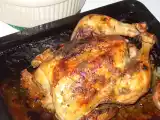 Frango assado na brasa Prato PrincipalMédio50 min1234 Kcal Enviar esta receita a um amigo Imprima esta página Falar com o autor da receita Fez esta receita? Compartilhe Ingredientes 4 Tanto eu como o meu homem simplesmente adoramos o franguinho feito assim! Diga-se de passagem que em termos de sabor não tem nada a vêr com um simples frango assado no fôrno ou no grelhador eléctrico! É simplesmente delícioso!! :) Eis como faço o meu: 1 frango já arranjado e aberto ao meio 2 dentes de alho 250 ml de azeite 2 folhas de louro 50 gr de margarina 1 knorr de carne pimentão doce q.b. Sal e pimenta q.b. Custo estimado: 11.67Euros€ (2.92€/porção)