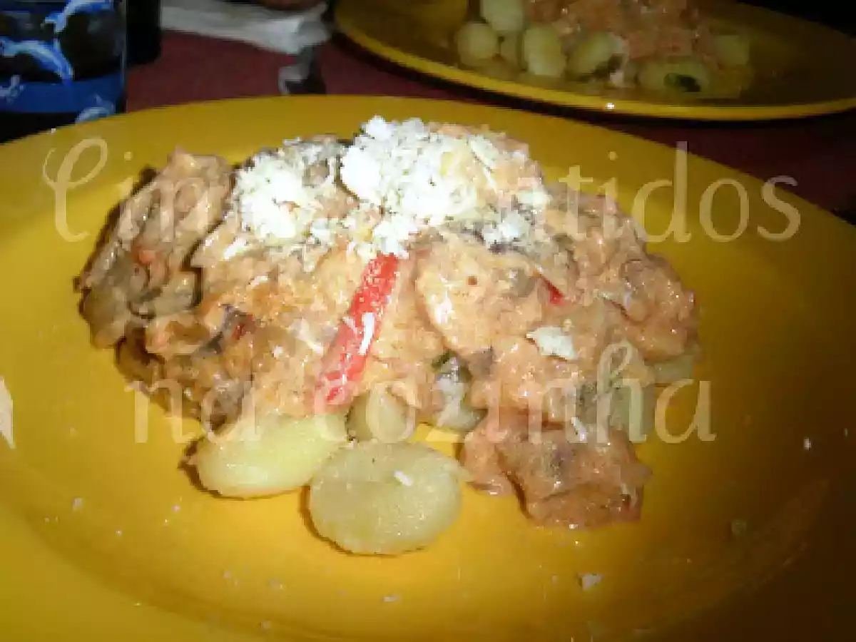 Gnocchi com atum e delicias do mar AnteriorNext Prato PrincipalMuito Fácil30 min Enviar esta receita a um amigo Imprima esta página Falar com o autor da receita Fez esta receita? Compartilhe Ingredientes 3 250 g de gnocchi 2 latas de atum 6 palitos de delicias do mar 1 pacote de natas 200 ml 1 colher de sopa de polpa de tomate 1 cebola pequena azeite queijo ralado para polvilhar