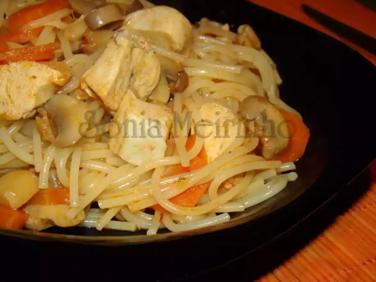 Guisado de massa com cubos de frango, cenouras e cogumelos AnteriorNext Prato PrincipalMuito Fácil35 min316 Kcal Enviar esta receita a um amigo Imprima esta página Falar com o autor da receita Fez esta receita? Compartilhe Ingredientes 2 1 peito de frango em cubos 30 ml. de cerveja 2 colheres de sopa de massa de pimentão 2 colheres de sopa de polpa de tomate Alho em pó 2 cenouras cortadas Oregãos 1 lata de cogumelos laminados 1 caldo de carne knorr Água q.b. Esparguete Sal, q.b. Custo estimado: 3.03Euros€ (1.52€/porção)