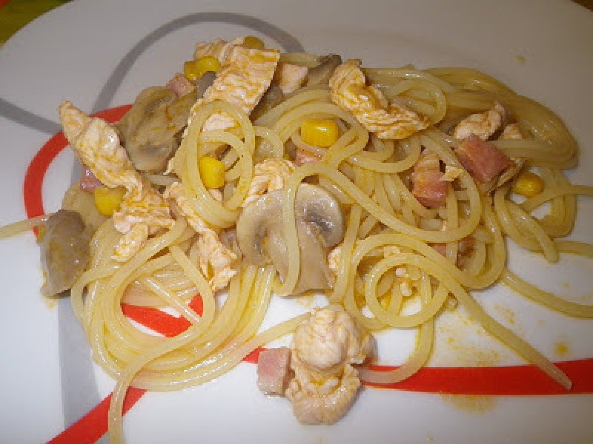 Guisado de peru com milho e cogumelos Prato PrincipalMuito Fácil25 min Enviar esta receita a um amigo Imprima esta página Falar com o autor da receita Fez esta receita? Compartilhe Ingredientes 4 peito de frango (Usei bifes de peru) milho bacon tomate frito (pouco),cogumelos paris(usei cogumelos brancos) azeite e margarina,alho e cebola picado esparguete