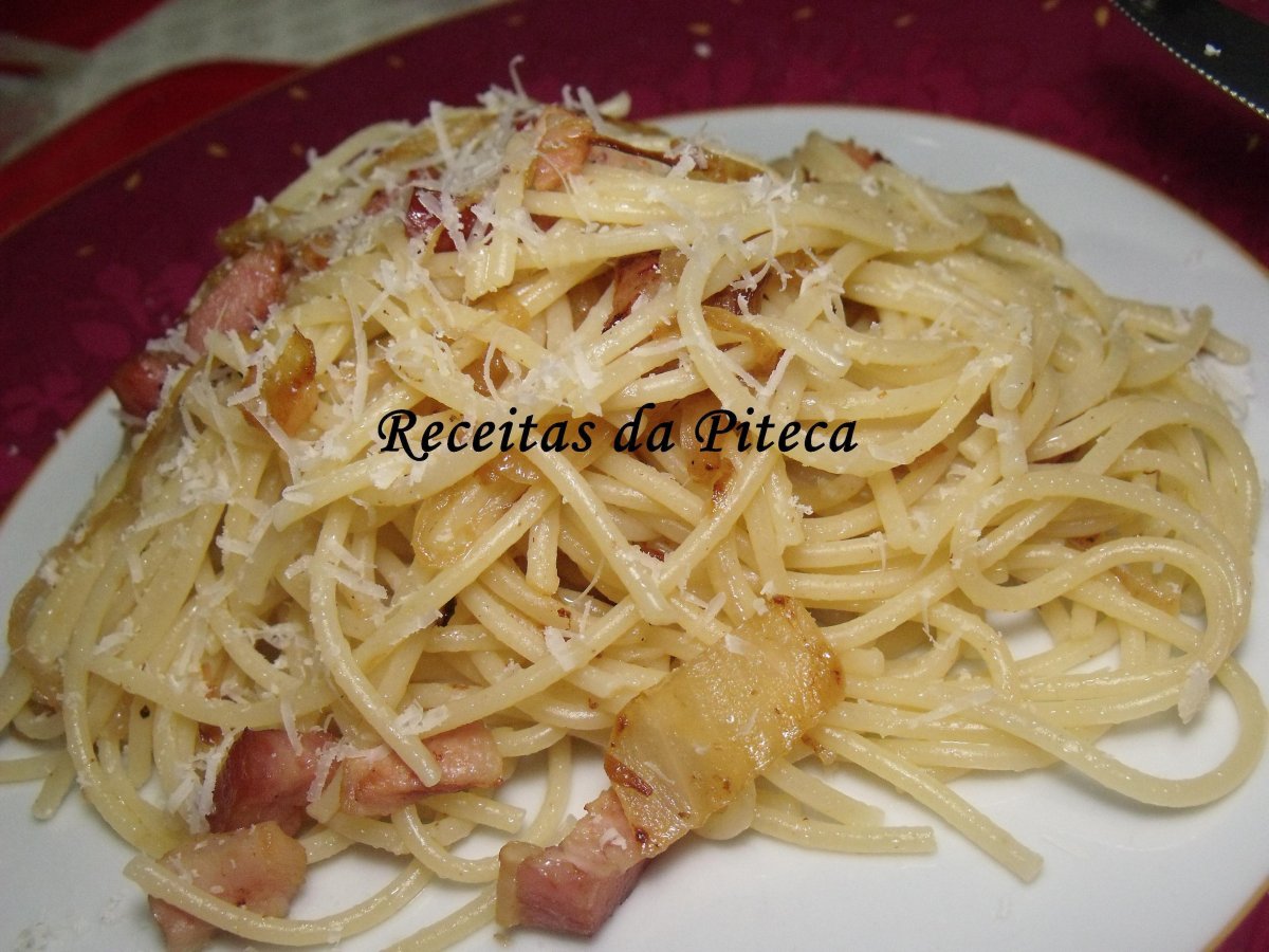 Linguine com azeitonas e bacon