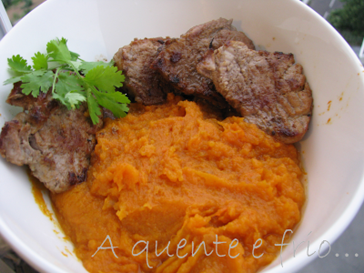 Lombinhos de porco com puré de abóbora Prato PrincipalMuito Fácil55 min Enviar esta receita a um amigo Imprima esta página Falar com o autor da receita Fez esta receita? Compartilhe Ingredientes 4 1 lombinho de porco cominhos q.b. 6 cravinhos 400 g de abóbora 1 batata-doce grande azeite q.b. 1/2 cebola 2 dentes de alho 1 folha de louro flor de sal q.b.