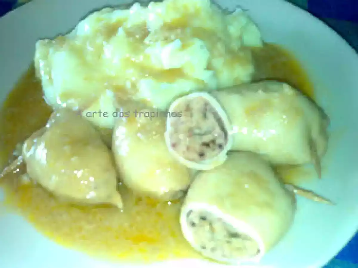 Lulas recheadas Prato PrincipalMuito Fácil50 min1466 Kcal Enviar esta receita a um amigo Imprima esta página Falar com o autor da receita Fez esta receita? Compartilhe Ingredientes 1 Lulas limpas Rabinhos e asas das lulas Pão demolhado em leite Chouriço partido cebola alho e azeite sal pimenta paprika ou molho de tomate Custo estimado: 2.99Euros€ (2.99€/porção)
