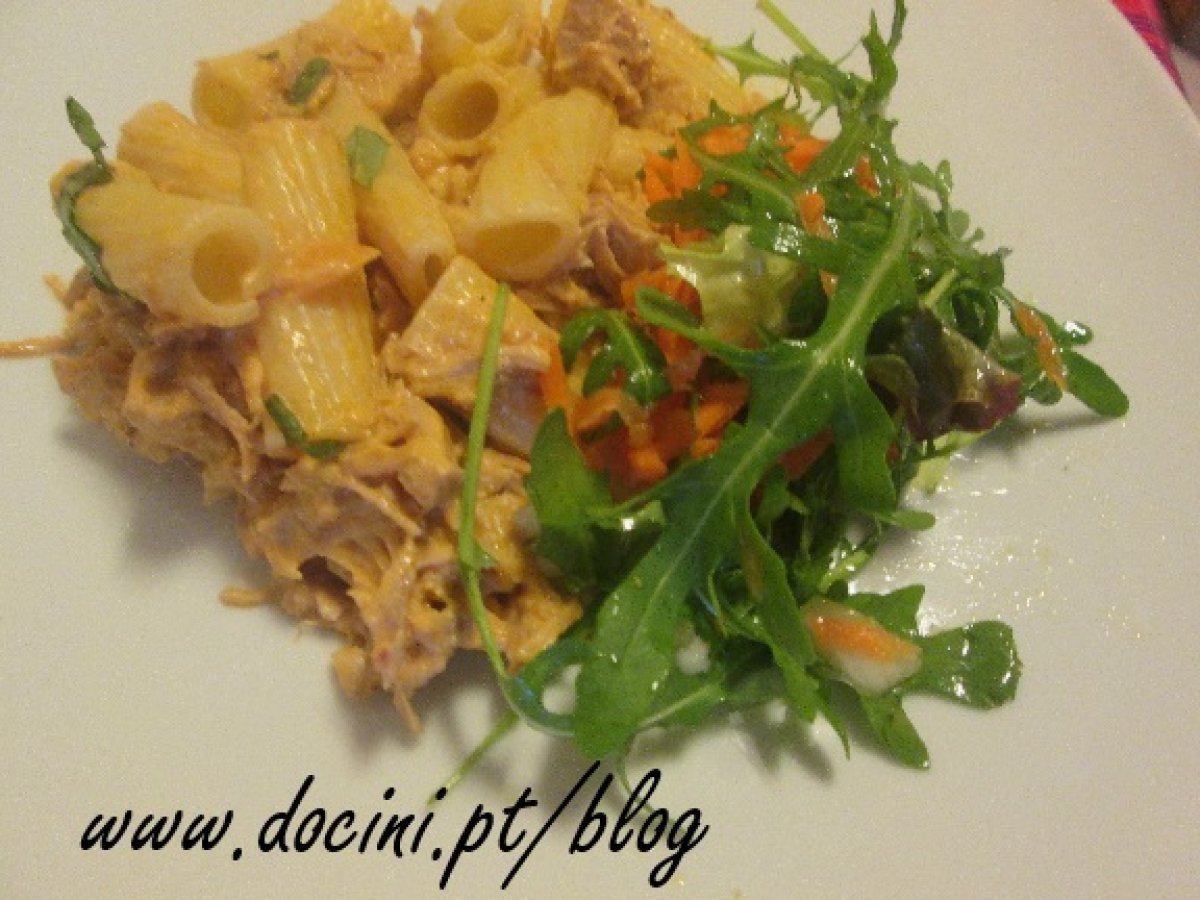Macarrão com lombo estufado e natas (aproveitamento de sobras)