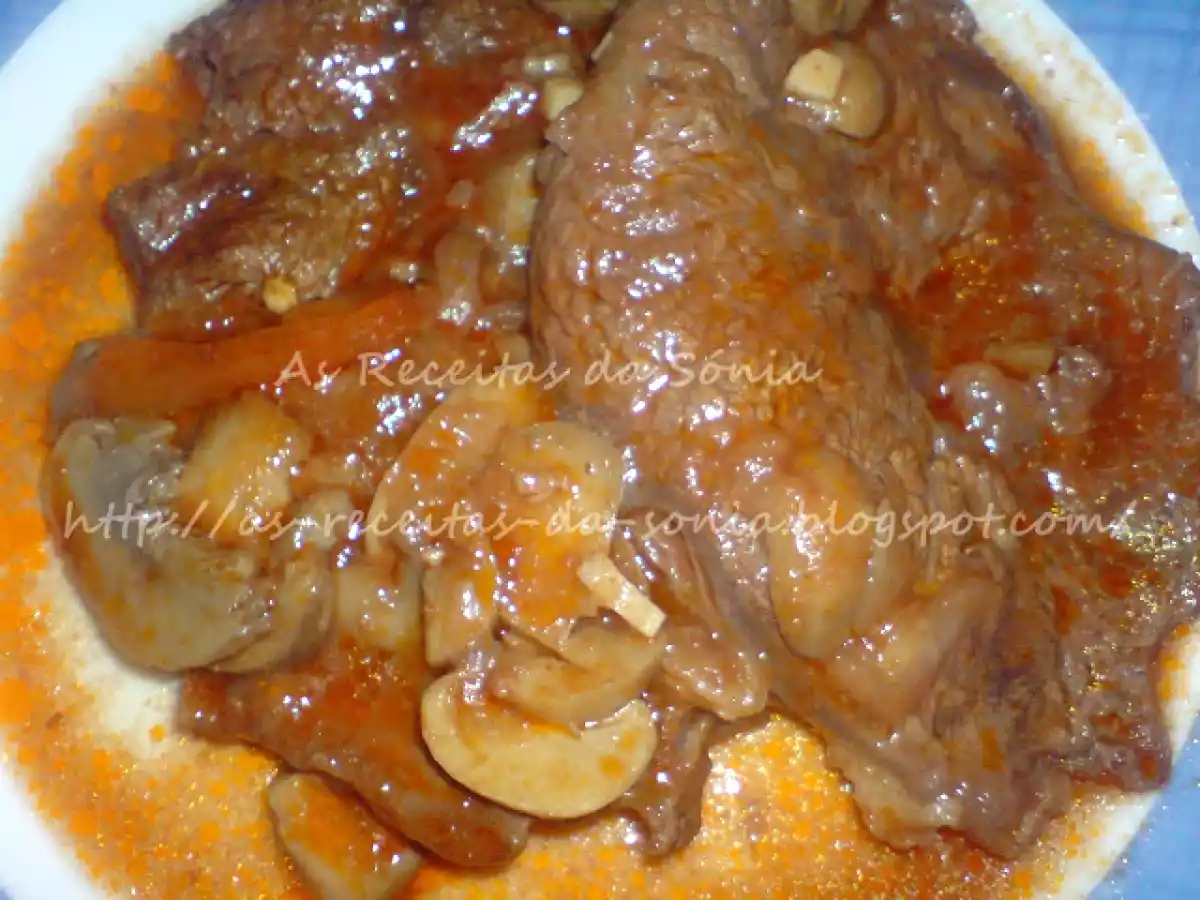 Novilho estufado com cerveja Prato PrincipalMuito Fácil30 min432 Kcal Enviar esta receita a um amigo Imprima esta página Falar com o autor da receita Fez esta receita? Compartilhe Ingredientes 5 800 g de carne de novilho para estufar 2 Cebolas ás rodelas 3 Colheres de sopa de azeite 3 Dentes de alhos picados 1 Lata de tomate pelado cortado aos quadradinhos 1 Cerveja 1 Folha de louro 1 Lata de cogumelos ½ Pimento verde Pimenta Sal Custo estimado: 12.32Euros€ (2.46€/porção)
