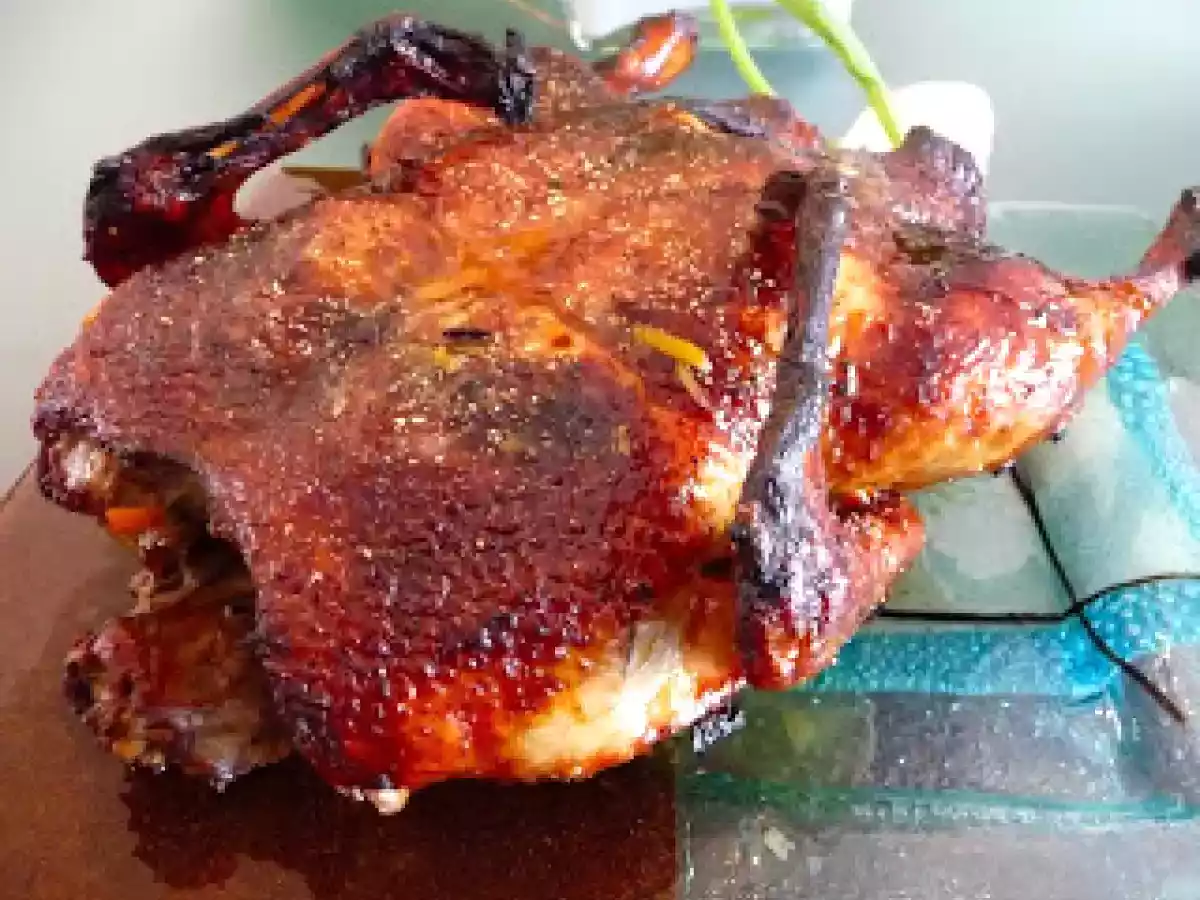Pato com laranja e lima Prato PrincipalMuito Fácil55 min423 Kcal Enviar esta receita a um amigo Imprima esta página Falar com o autor da receita Fez esta receita? Compartilhe Ingredientes 6 1 pato inteiro (2.5 kg) 1 laranja grande 1 lima 3 dentes de alho, finamente picados 3 colheres de sopa de azeite Sal e pimenta q.b. 2 cenouras 1 cebola 100 ml de água