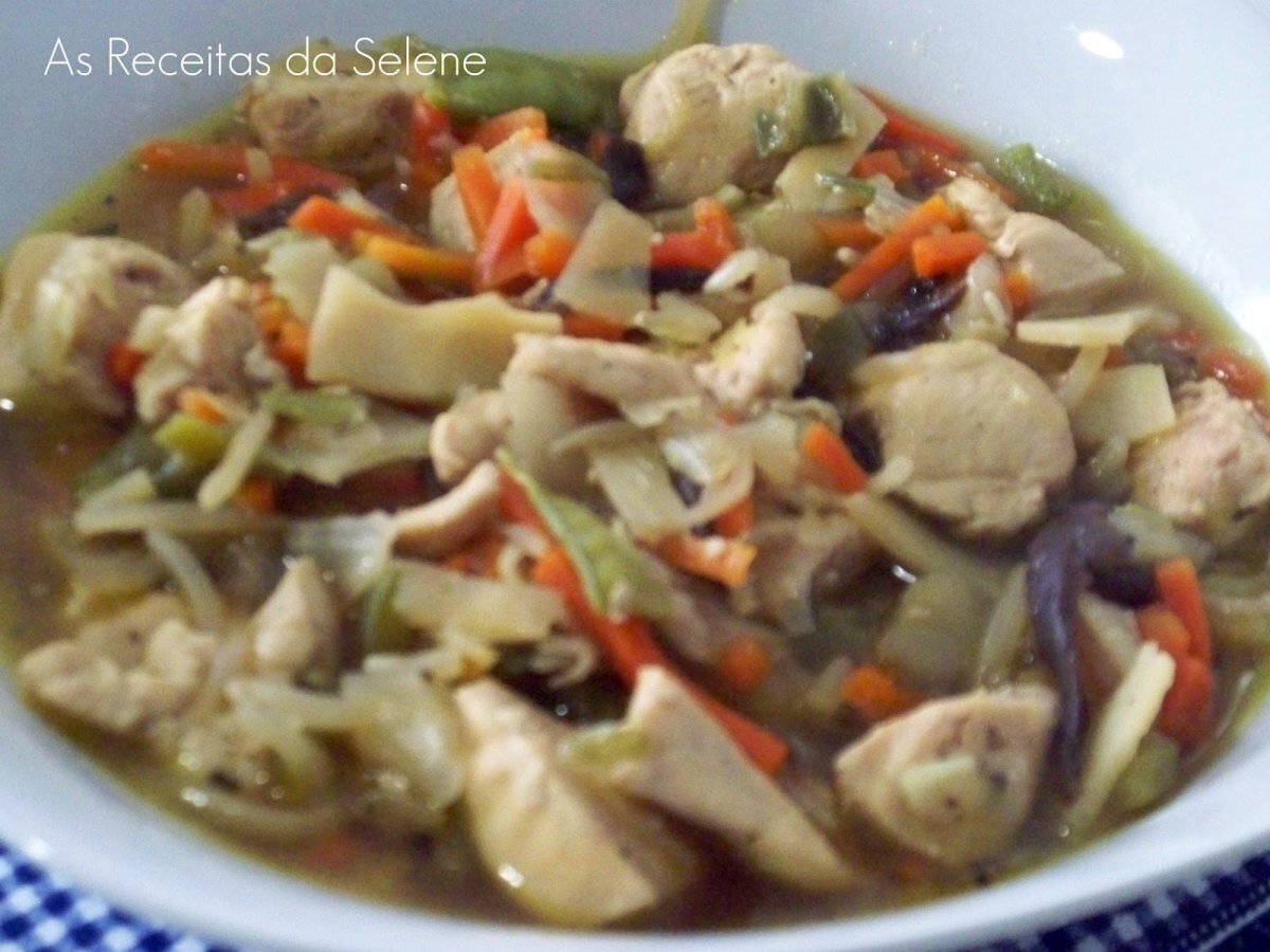 Na hora de jantar, ainda não sabia o que fazer aos peitos de frango... peguei no wok e a imaginação começou a trabalhar. O resultado supreendeu-me. Ficou muito saboroso. Gostei tanto que fotografei para poder partilhar.