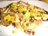 Polvo com crosta de milho e azeitonas Prato PrincipalMédio1 h 30 m Enviar esta receita a um amigo Imprima esta página Falar com o autor da receita Fez esta receita? Compartilhe Ingredientes 6 1 Kg de polvo 1 cenoura 2 cebolas 5 colheres de sopa de azeite 3 dentes de alho 2 folhas de louro 1 colher de chá se sal 1/2 colher de café de pimenta 300g de caldo verde 300g de miolo de broa de milho 20g de tomate seco 20g de azeitonas pretas laminadas 1 colher de chá de orégãos 200 g de mistura de alface e agrião para a salada 1 colher de chá de vinagre balsâmico para temperar a salada