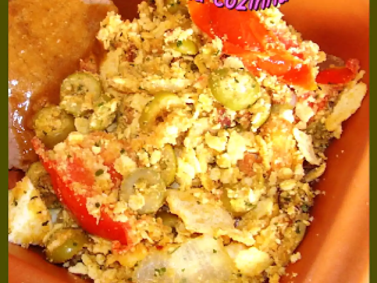 Receita: farofa para churrasco Prato PrincipalMuito Fácil15 min537 Kcal Enviar esta receita a um amigo Imprima esta página Falar com o autor da receita Fez esta receita? Compartilhe Ingredientes 1 Bacon picado 1 cebola em pedaços grandes 1 tomate em gomos 2 ovos em pedaços grandes Azeitonas verdes picadas Salsinha picada Sal a gosto Farinha amarela Custo estimado: 0.85Euros€ (0.85€/porção)