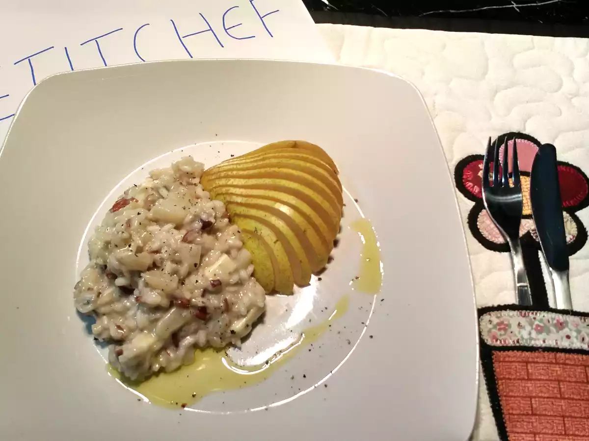Risoto de pêra, gorgonzola e nozes