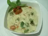 Risoto de tomate e manjericão fresco vote agora Prato PrincipalMuito Fácil30 min Enviar esta receita a um amigo Imprima esta página Falar com o autor da receita Fez esta receita? Compartilhe Ingredientes 4 1 xícara de arroz 2-3 tomates, sem pele e sementes picadas Bacon picado finamente 1/2 cebola picada mega-hiper Folhas de manjericão fresco Azeite Caldo de legumes cerca de 1 litro Vinho branco seco 1/2 xícara Sal a gosto 1 colher de sopa de manteiga Queijo ralado ou lascas