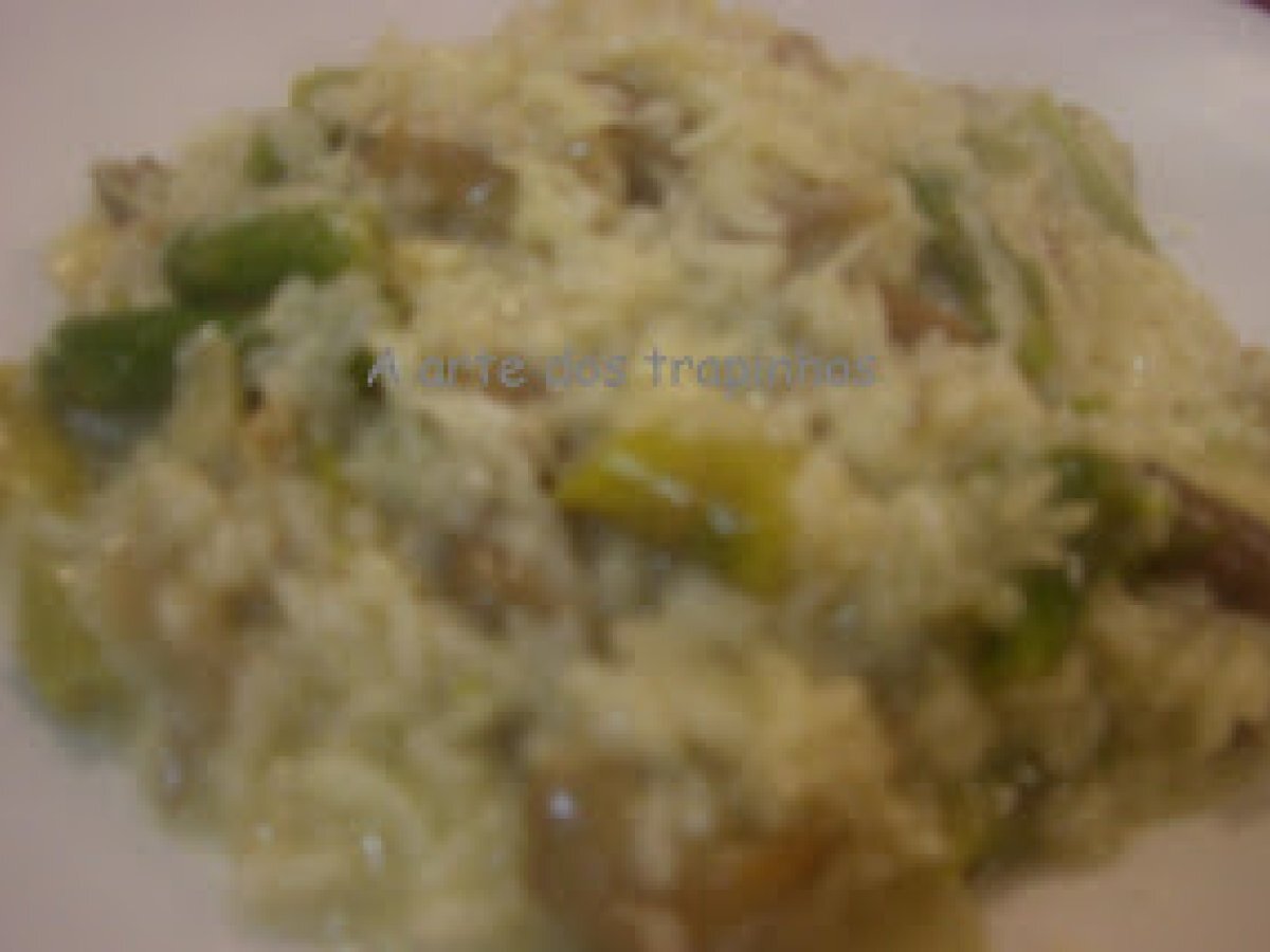 Risotto de espargos e cogumelos Prato PrincipalMuito Fácil50 min Enviar esta receita a um amigo Imprima esta página Falar com o autor da receita Fez esta receita? Compartilhe Ingredientes 2 4 espargos verdes, frescos 200 g de cogumelos Paris 100 g de pleurotos 50 g de cogumelos portobello 1 chalota 2 dentes de alho 240 g de arroz para risotto 1 colher de sopa de sal marinho 1 dl de vinho branco 20 g de manteiga 40 g de queijo parmesão 1/2 de café de pimenta moída azeite q.b.