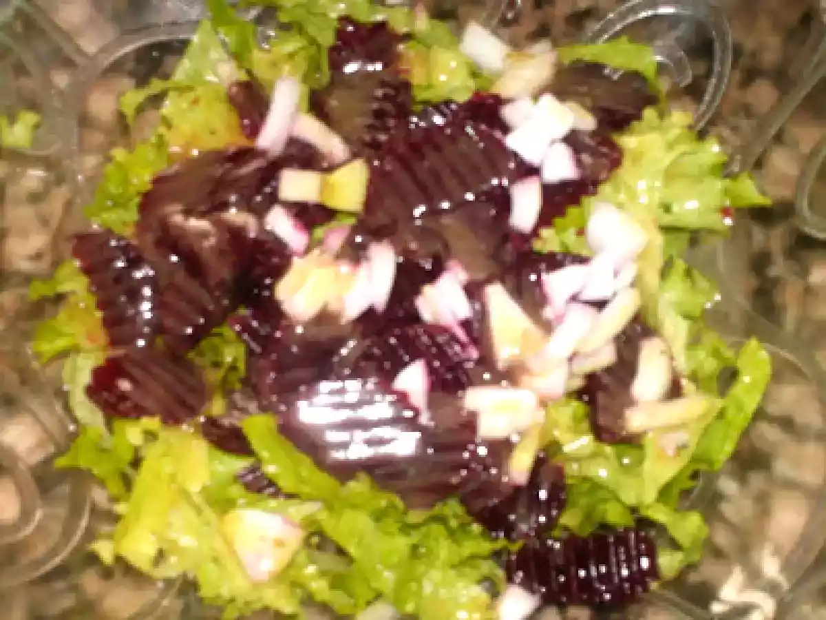 Salada de alface e beterraba AnteriorNext Prato PrincipalMuito Fácil50 min285 Kcal Enviar esta receita a um amigo Imprima esta página Falar com o autor da receita Fez esta receita? Compartilhe Ingredientes 1 1 alface 2 beterrabas cozidas 1 cebola molho vinagrete para temperar