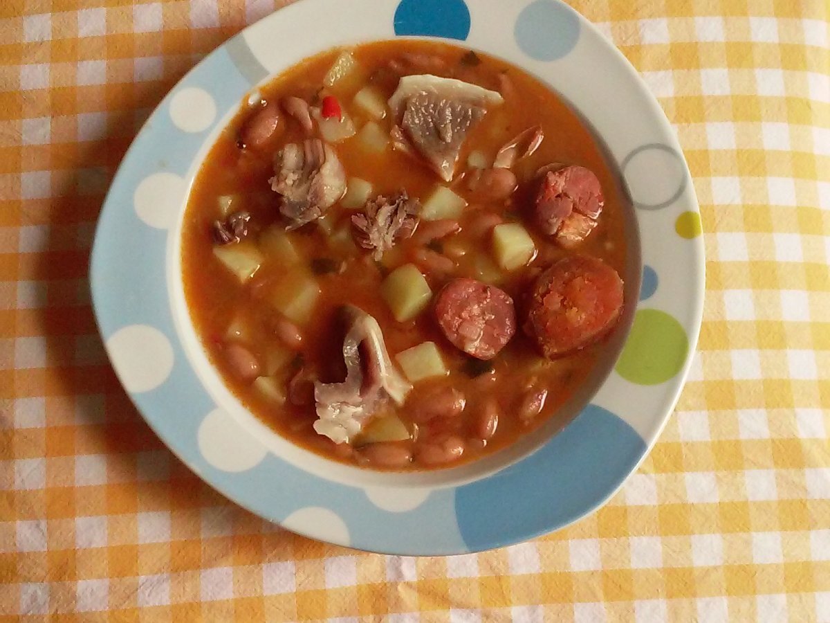 Sopa da pedra Prato PrincipalMédio1 h 15 m Enviar esta receita a um amigo Imprima esta página Falar com o autor da receita Fez esta receita? Compartilhe À moda de Almeirim Ingredientes 6 Carne (chispe e orelha de porco salgados) 1/2 l de Feijão (encarnado) 700 gramas Batatas 1 cebola 3 dentes de alho 200 gramas Chouriço (carne) 100 gramas Toucinho 1 folha de louro 1 c/ de sopa de Calda de pimentão 1 c/ de sopa de Ketchup 1 ramo de Coentros 1 Farinheira