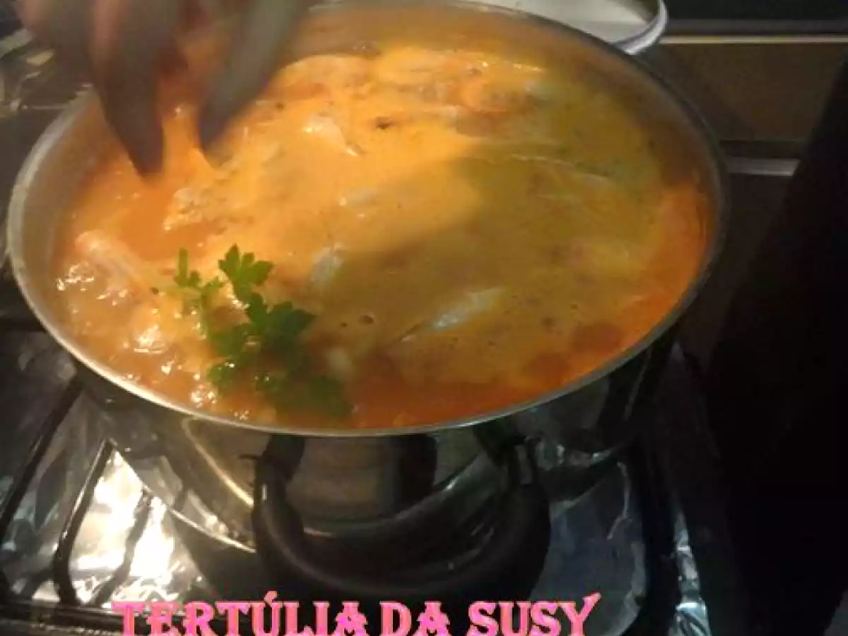 Sopa rica de peixes AnteriorNext Prato PrincipalMédio1 hora104 Kcal Enviar esta receita a um amigo Imprima esta página Falar com o autor da receita Fez esta receita? Compartilhe Ingredientes 8 1 cebola 3 dentes de alho 2 tomates Polpa de tomate q.b. 1 folha de louro Peixe q.b. Azeite q.b. Massa de cotovelo q.b. Salsa q.b. Água q.b. Camarão com casca q.b. Piri-piri q.b. Sal q.b. Custo estimado: 3.02Euros€ (0.38€/porção)