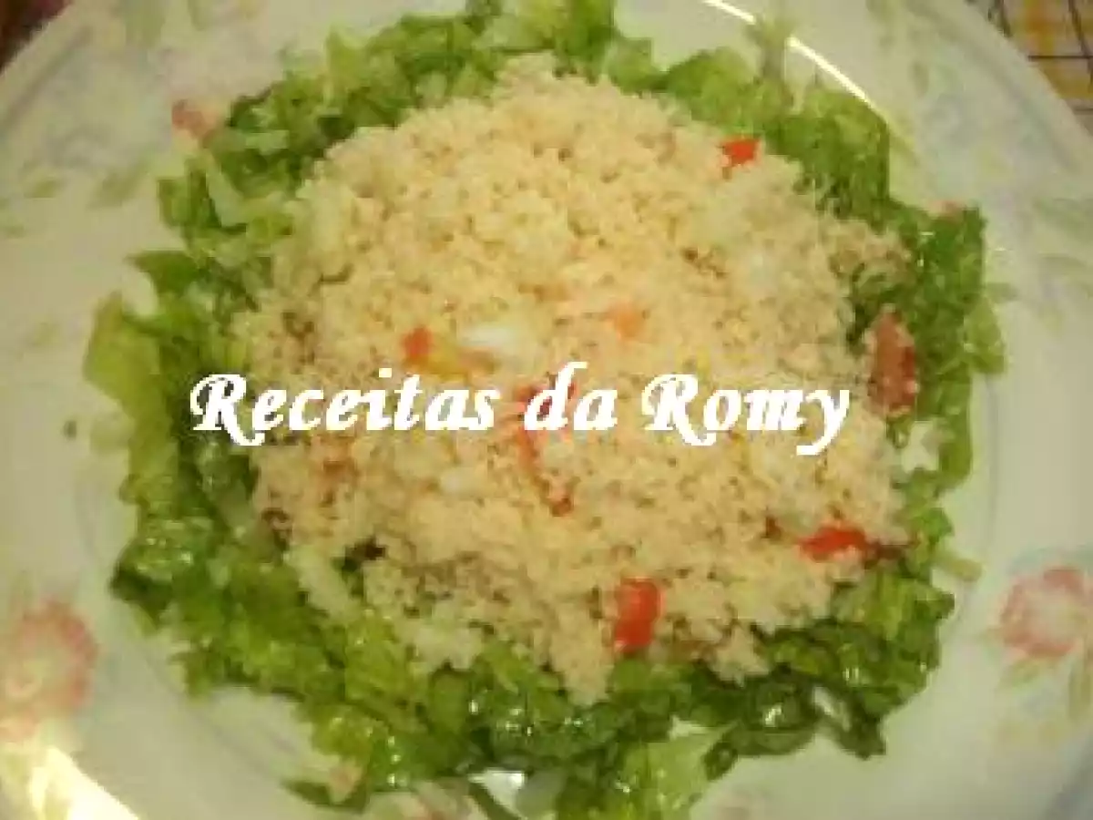 Tabulé Prato PrincipalMuito Fácil25 min Enviar esta receita a um amigo Imprima esta página Falar com o autor da receita Fez esta receita? Compartilhe Ingredientes 1 1 copo de couscous 1 copo de água a ferver sal, pimenta 1 colher sopa de óleo Pepino em cubinhos muito pequeninos tomate tb em cubinhos e cebola sumo de limão azeite Alface em juliana