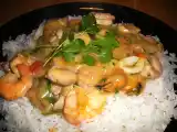 Ingredientes: 500 g de camarões 1 limão (sumo) 1 cebola pequena 2 dentes de alho 50 ml de azeite 800 g mistura de marisco 2 tomates maduros 0.5 pimento verde...
