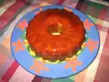Ingredientes: 8 gemas 4 ovos 250 gr de acúcar. 17 cl de agua 100 gr de amêndoa ralada Raspa de uma laranja Sumo de uma laranja Caramelo líquido para barrar a forma