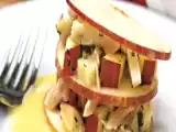 Ingredientes: 02 maçãs Vermelhas 02 Maçãs Verdes Salaminho Italiano 200g de queijo Prato Folhas Verdes Palmito Picado 01 cx de Creme de leite A Mesma medida de...