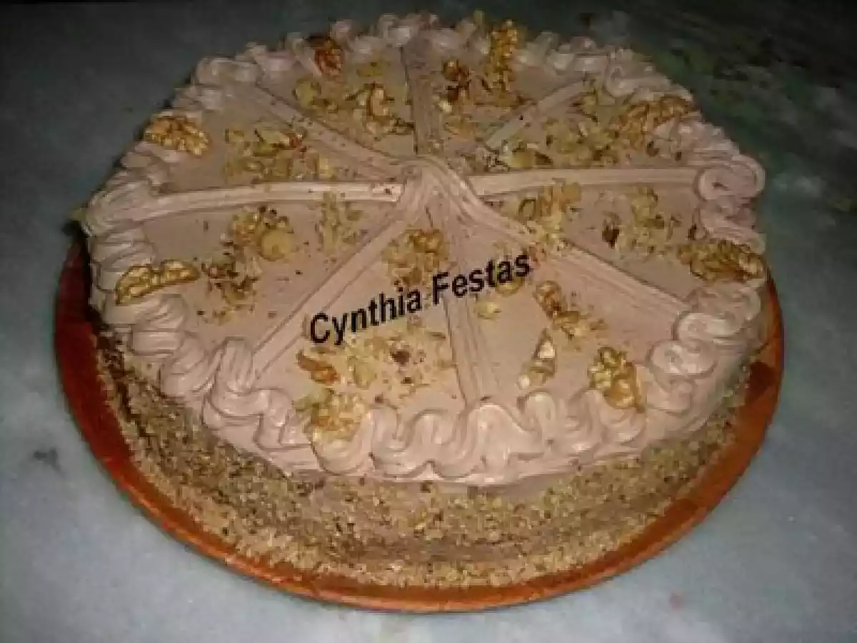 Bolo de nozes com chocolate (cynthia) SobremesaMuito Fácil45 min1016 Kcal Enviar esta receita a um amigo Imprima esta página Falar com o autor da receita Fez esta receita? Compartilhe Ingredientes 10 Massa: 6 ovos 2 xícaras chá de açucar 2 1/2 xícaras chá de farinha de trigo com fermento 1 xícara chá de chocolate em pó 1 xícara chá de nozes trituradas 200 ml de agua fervente 100 ml de óleo Recheio: 2 latas de leite condensado cozido em ponto firme 1 lata de creme de leite com o soro 1/2 xícara chá de chocolate em pó 1 xícara chá de nozes trituradas Calda: 250 ml de leite 1/2 lata de leite condensado 1/2 lata de creme de leite