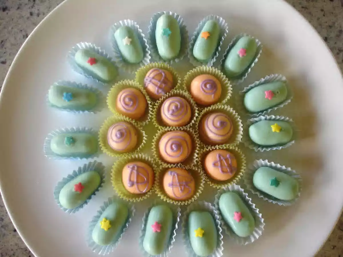 Camafeu e bombom de coco AnteriorNext SobremesaMuito Fácil50 min750 Kcal Enviar esta receita a um amigo Imprima esta página Falar com o autor da receita Fez esta receita? Compartilhe Ingredientes 12 1 1/2 lata de leite condensado 1 xícara de chá de nozes picadas confeitos no formato estrela ou outro de sua preferência para enfeitar 250 g chocolate branco para cobertura corante alimentício próprio para chocolate forminha de papel papel manteiga Bombom de Coco 1 1/2 lata de leite condensado 1 pacote de coco ralado pequeno (200 g) 250 g chocolate branco para cobertura dos bombons 100 g chocolate branco para arabescos/espirais sobre -os bombons corante alimentício próprio para chocolate forminha de papel papel manteiga