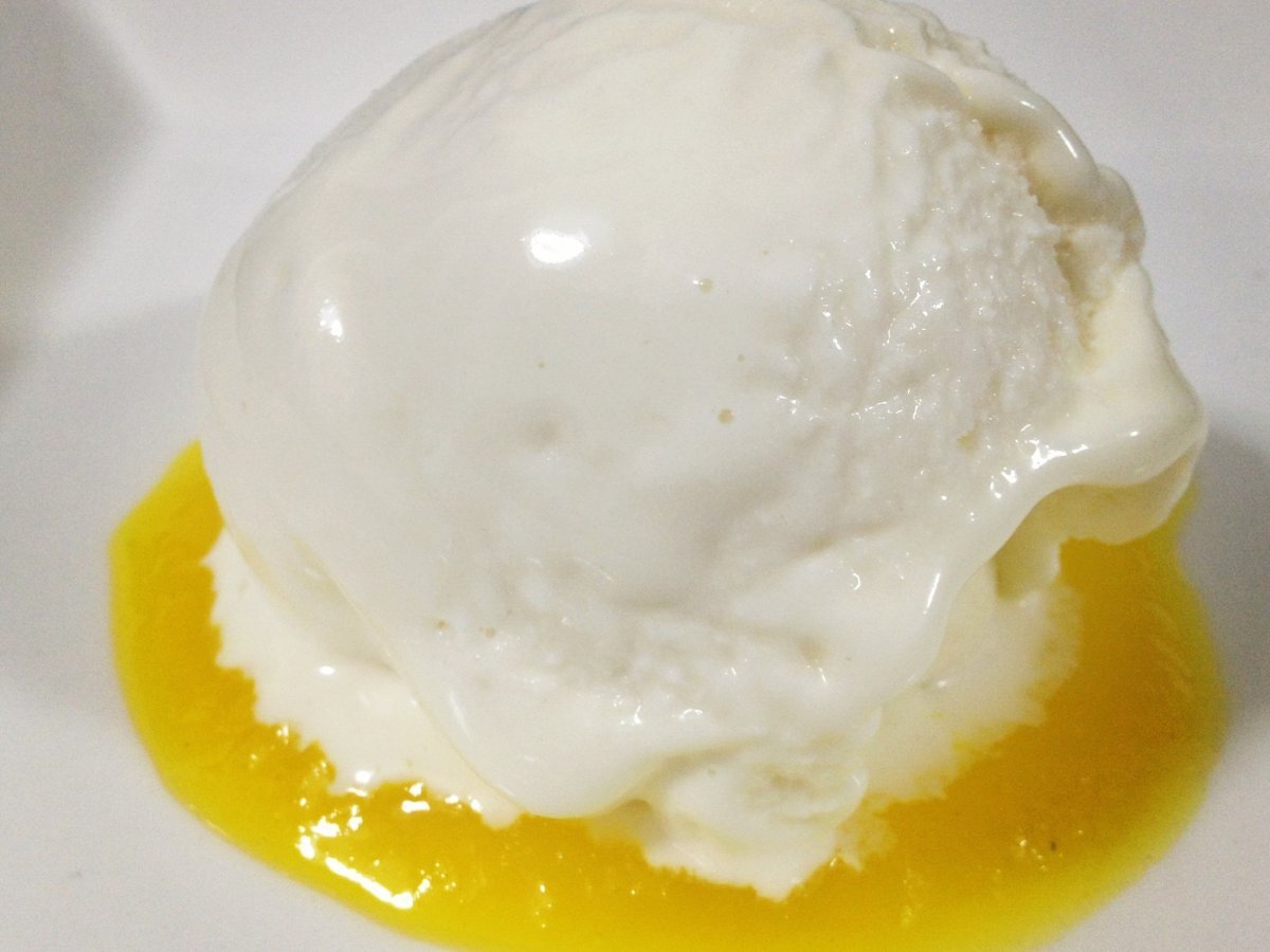 Sorvete de coco com coulis de abacaxi