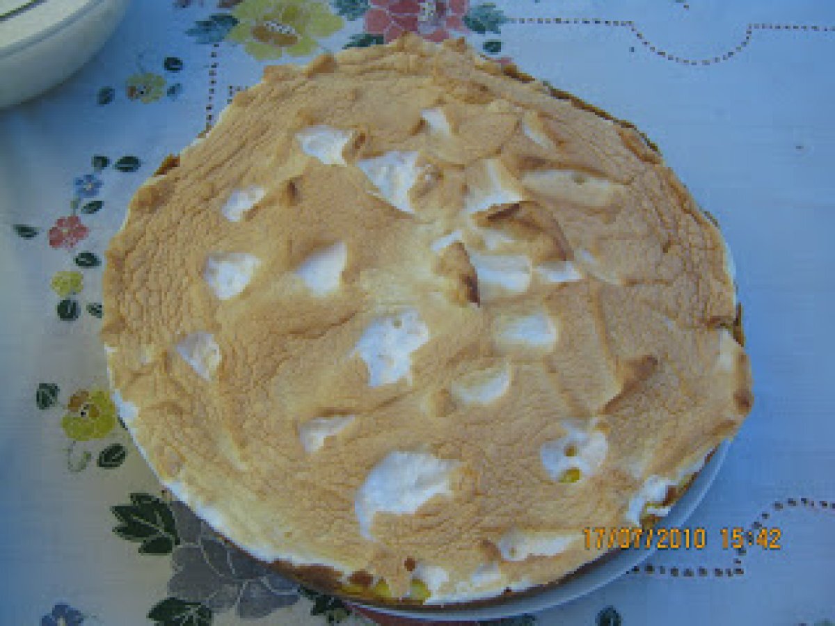 Tarte de leite condensado merengada SobremesaMuito Fácil45 min Enviar esta receita a um amigo Imprima esta página Falar com o autor da receita Fez esta receita? Compartilhe Ingredientes 8 para a base: 1 pacote de bolacha maria; 175 g. de manteiga. para o recheio: 3 ovos; 1 lata de leite condensado;s umo e raspa de 1 limão. para a cobertura: 3 claras; açúcar q.b.